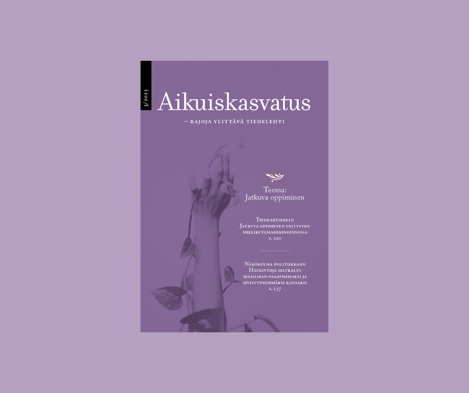 Siirry tuoreimpaan numeroon Lue pääkirjoitus Ilmoittaudu teeman julkistamistamiseen 29.10.2025Aikuiskasvatus: Jatkuva oppiminen kaipaa sivistyksen näkökulmaa